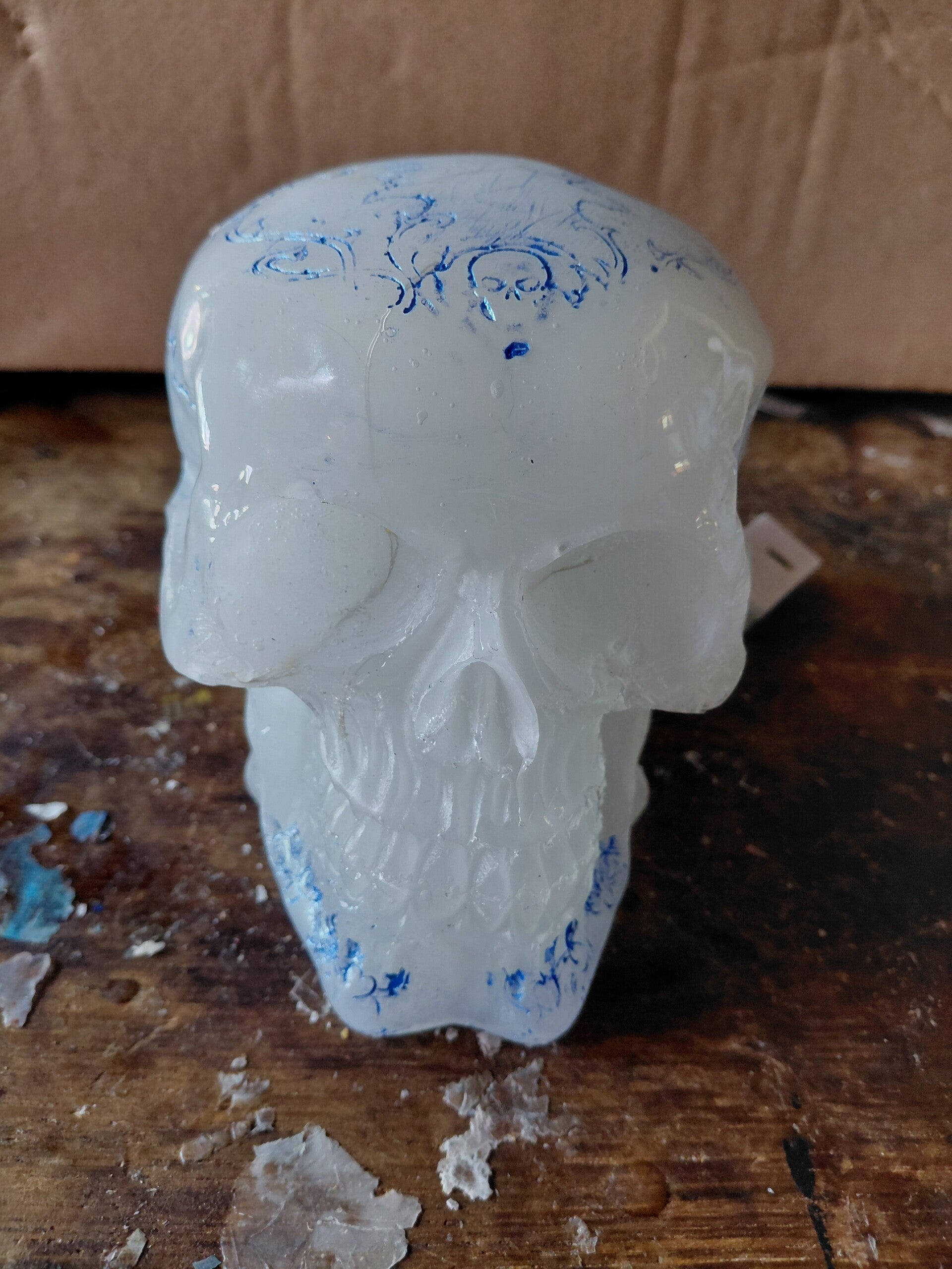 lampje skull met versiering, wit/blauw